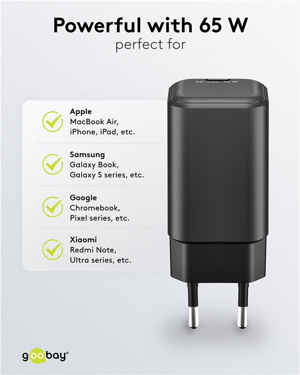 • Dzięki potężnej mocy 65 W i uniwersalnemu złączu USB-C™ adapter do ładowania nadaje się do niemal każdego urządzenia - od smartfonów po wydajne notebooki