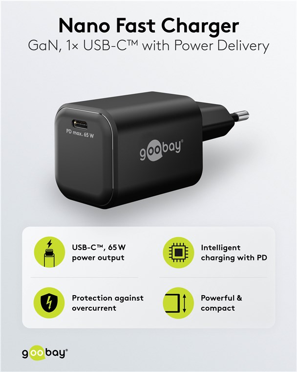 Szybka ładowarka USB-C™ PD GaN Nano (65 W) czarny