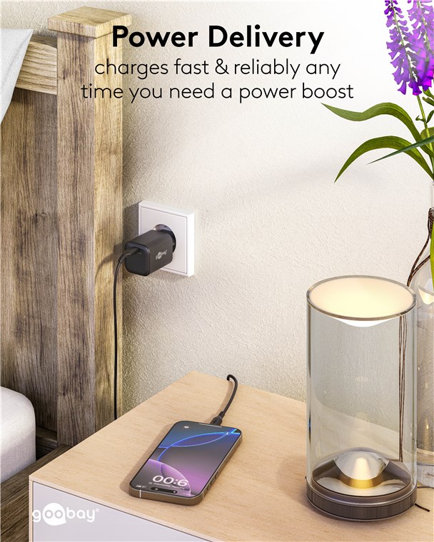 • Superkompaktowa i lekka konstrukcja mieści się w każdej torbie i sprawia, że zasilacz USB-C™ jest praktycznym towarzyszem w podróży