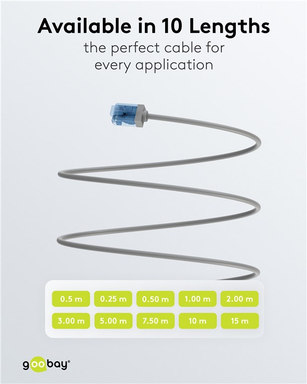 CATegoria sama dla siebie: Super cienkie kable CAT z bardzo krótkimi złączami drastycznie zmniejszają objętość materiału w szafach serwerowych i panelach krosowych - dla znacznie lepszej cyrkulacji powietrza i mniejszego gromadzenia się ciepła niż w przypadku konwencjonalnego okablowania. Ponadto, miękki płaszcz TPE i cienkie miedziane przewodniki zapewniają wyjątkową elastyczność i wydajność materiałową, które sprawiają, że ta generacja kabli jest idealnym partnerem sieciowym.