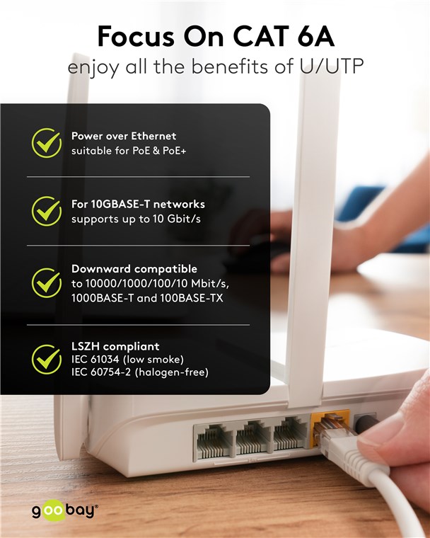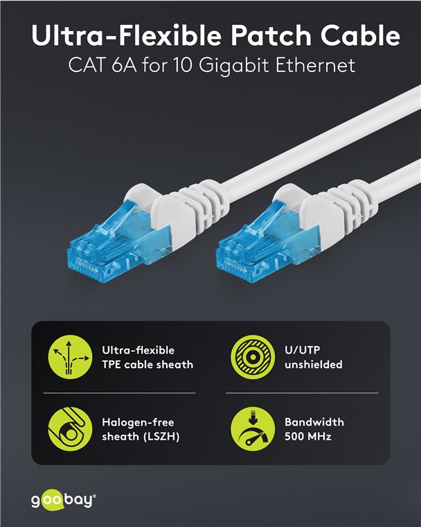 - Szybki, szybszy, CAT 6A: Jako kabel sieciowy CAT 6A odpowiedni do 10-Gigabit Ethernet 10BASE-T, 100BASE-TX, 1000BASE-T, 10/100/1000/10000 Mbit/s