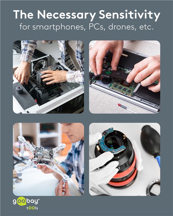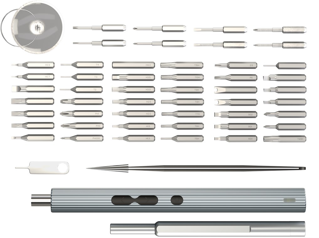 - Zawartość zestawu śrubokrętów: Dodatkowy śrubokręt ręczny, przyssawka, igła SIM, narzędzie dźwigniowe (otwieracz obudowy) i pęseta ESD-12 do prac precyzyjnych