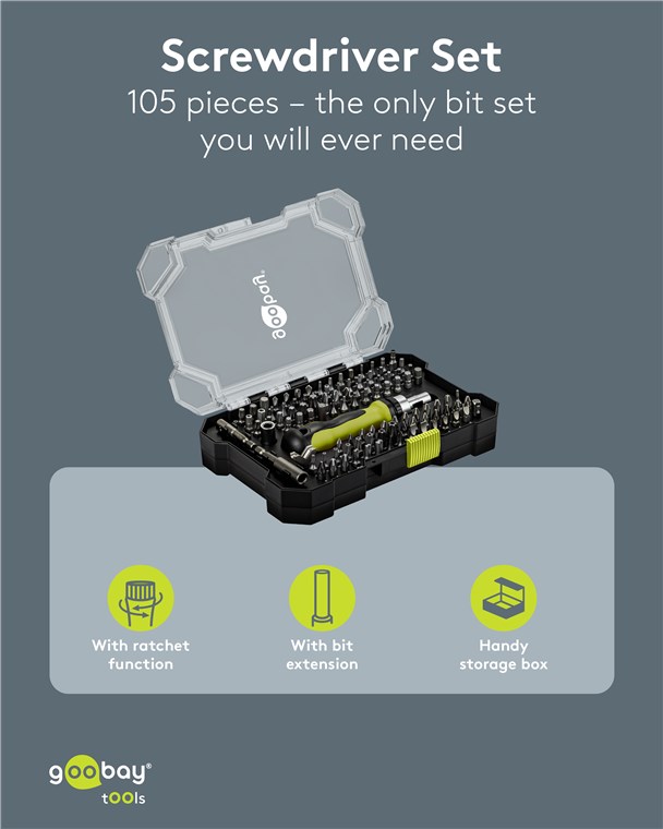 - Praktyczny zestaw śrubokrętów z normowanymi bitami, które pasują również do standardowych wkrętarek akumulatorowych