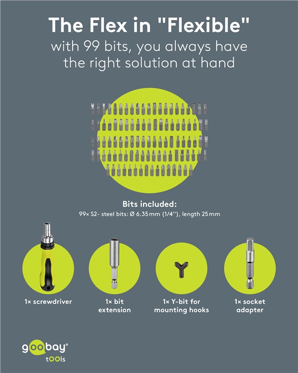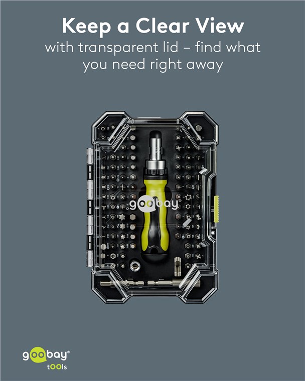 - Dzięki praktycznemu, kompaktowemu formatowi zestaw bitów można łatwo schować w każdej skrzynce narzędziowej i idealnie nadaje się do użytku mobilnego