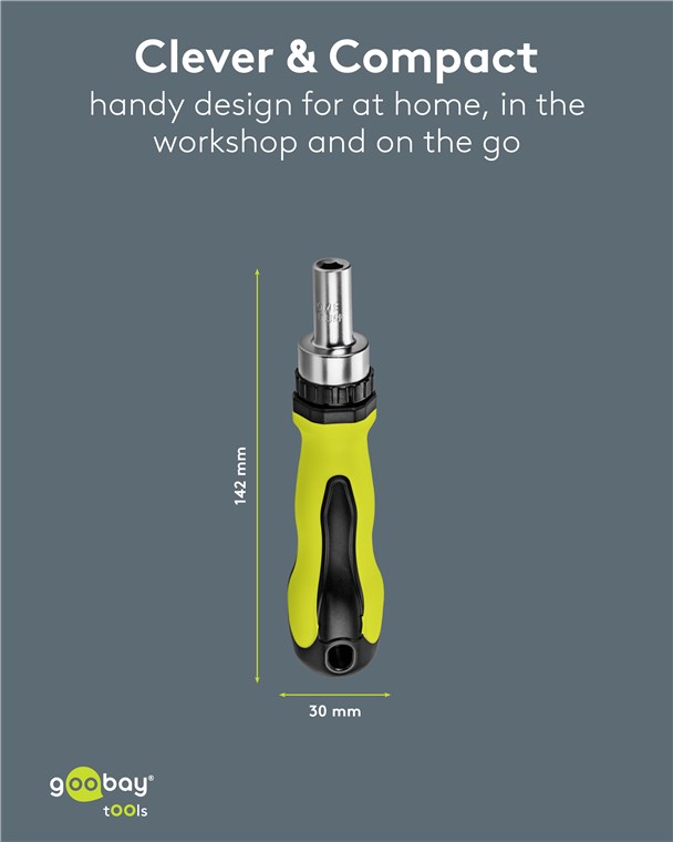 - Przemyślana konstrukcja: Krótki śrubokręt z gumowanym uchwytem i funkcją grzechotki dobrze leży w dłoni i zapobiega szybkiemu zmęczeniu, otwór: 1/4 cala